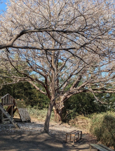 遊び場の建物周り、土遊びをするところ、さくら広場などとにかく勢いのすごい緑。